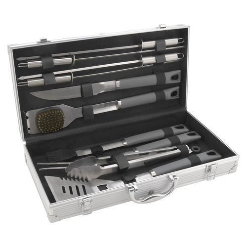 Pořiďte si tuto profesionální sadu se vším, co potřebujete pro grilování. Obsahuje nástroje pro přípravu nejrůznějších pokrmů, ale i následnou údržbu grilu. Je úhledně umístěna v transportním aluminiovém kufru a hodí se pro náročné uživatele. Sadu využijete doma na zahradě, ale i na cestách. Obsah sady: obracečka kleště dvouzubá vidlice mašlovací štětec porcovací nůž drátěnný kartáč 4x grilovací jehlice