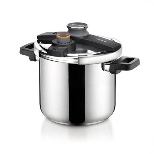 Tlakový hrnec ULTIMA značky Tescoma, to je luxusní tlakový hrnec s nádobou o objemu 7,5 l a tlakovou poklicí. Snadné nastavení ideálního tlaku IdealCook pro rychlou a šetrnou přípravu obvyklých pokrmů. Hrnec je opatřen 4 pojistkami a masivními ergonomickými úchyty. Třívrstvé sendvičové dno je vhodné pro všechny typy varných desek. Vyrobeno z prvotřídní nerezavějící oceli a odolného plastu. Hrnec lze mýt v myčce nádobí, poklici v myčce nemyjte. 5 roků záruka.Vlastnosti a výhody tlakového hrnce Ultima: přímo na regulátoru tlaku na víku hrnce jsou graficky znázorněny jednotlivé druhy masa snadno a intuitivně nastavíte ideální tlak pro připravované jídlo díky velkému otočnému uzávěru víka hrnec pohodlně otevřete a uzavřete jen jednou rukou má ukazatel aktuálního tlaku během vaření je opatřen praktickou odměřovací stupnicí součástí je napařovací síto z prvotřídní nerezavějící oceli Tlakový hrnec ULTIMA získal prestižní designérské ocenění Red Dot Design Award 2017.