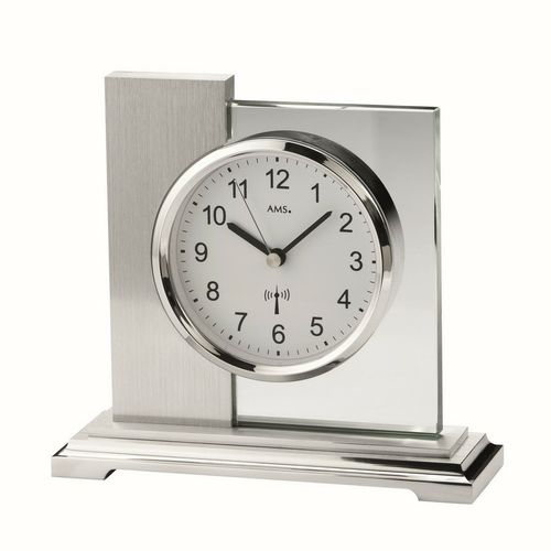 Luxusní stolní hodiny s chromovanými doplňky značky AMS ozvláštní váš obývací pokoj, svoje místo najdou na nočním stolku ve vaši ložnici a také skvěle zapadnou do interiéru pracovny. Naprosto přesné hodiny řízené rádiovým signálem.Hodiny jsou vyrobeny z broušeného minerálního skla, které je upevněno v kovové základně. Kovová základna je z plného částečně kartáčovaného a částečně leštěného kovu. Quarzový hodinový strojek na baterii. Prodloužená záruka na 3 roky! Nástěnné, stolní a podlahové hodiny AMS jsou spojením elegance a precizní německé kvality. Do detailu propracované hodiny AMS jsou vyráběny již více jak 100 let v německém Schwarzwaldu. Německé hodiny AMS jsou hodiny s trvalou hodnotou.