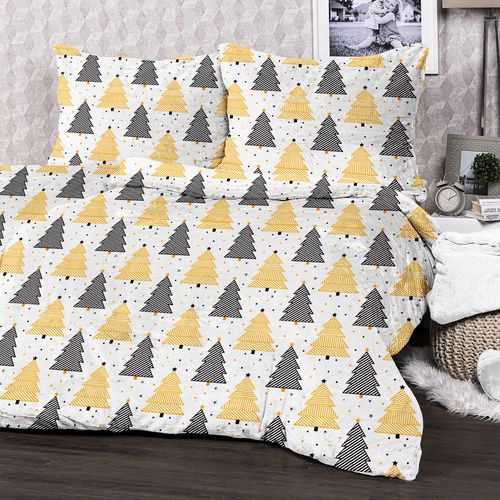 Vyčarujte ve své ložnici kouzelné ticho zimního lesa. Mikroflanelové povlečení s jednoduchým zimním motivem ve skandinávském designu bude skvělým společníkem do chladných nocí. Povlečení je oboustranné – z jedné strany jednoduché vánoční stromečky na bílém podkladu, které navodí kouzlo zasněžených plání, druhá strana je jednobarevná v odstínu slavnostní béžovozlaté. Je krásně měkké a hřejivé – ideální společník pro malé i velké zmrzlíky. Mikroflanel rychle schne, nemusí se žehlit ani se nemačká a je šetrný i k citlivé pokožce.Poznejte kouzlo kolekce bytového textilu Nordic, která osobitým způsobem čerpá inspiraci z oblíbeného skandinávského designu a dodá vašemu domovu harmonii severského bydlení. Kolekce Nordic nabízí pro každého něco: jemné pastelové barvy, neutrální barevné ladění, přírodní a zvířecí motivy či tradiční folklórní vzory.Souprava obsahuje: 1x povlak na polštář 70 x 90 cm 1x povlak na přikrývku 140 x 200 cm