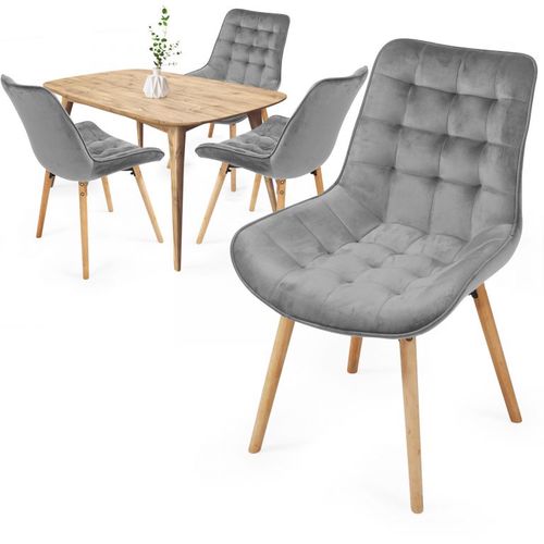 Nábytek ve skandinávském stylu je již delší dobu trendem v domácnostech i komerčních prostorách. Naše vintage jídelní židle upoutá pozornost a vnese do vašeho domova jednoduchou eleganci. Stabilní opěradlo a tvarovaný sedák s čalouněním zajišťují pohodlí při sezení. Její spolehlivost je založena na robustních nohách z bukového dřeva. Tyto čalouněné židle jsou k dispozici v široké škále stylových barevných variant. Naše akcentové židle se díky návodu snadno sestavují a lze je použít pro obytné i komerční účely (jídelny, kuchyně, obývací pokoje restaurace, kavárny a hotely atd.). Ergonomický zakřivený design a polstrovaný sedák a nízká hmotnost těchto retro židlí zajišťují pohodlí při sezení a snadné používání. Technické údaje: celková výška: cca 84 cm výška sedadla: cca 44 cm celková šířka: cca 54 cm celkový hloubka: 59,5 cm výška opěradla: cca 43 cm tloušťka sedáku: cca 5 cm celková hmotnost jedné židle: cca 5,3 kg nosnost židle: cca 150 kg materiál nohou: bukové dřevo s protiskluzovým řešením spodní hrany rám židle (sedák + opěradlo): topol látkový potah: samet (čtvercově prošívaný) sedák: pěnová výplň ostatní materiál: kov barva: světle šedá Obsah balení: 4 x jídelní židle - světle šedá, demontovaná Upozornění: reálná barva se může od fotografie lišit v závislosti na zobrazovací technice.
