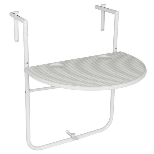 Díky našemu závěsnému stolku, který lze sklopit ušetříte místo. Díky svému materiálu je stolek odolný a snadno udržovatelný, může zůstat venku za každého počasí. Ať už jako konferenční stolek nebo jako stolek na rostliny vždy vypadá dobře. Výška stolu je nastavitelná a závisí na výšce zábradlí. Technické údaje: deska stolu: 59,5 x 40 cm (d x š) rozpětí zábradlí: 6 až 14,5 cm rozměry v rozloženém stavu: 83 x 59,5 x 63,5 cm (v x š x h) rozměry ve složeném stavu: 71 x 59,5 x 23,5 cm (v x š x h) podpěra stěny rámu: 71 x 77,5 x 83 cm nastavitelná výška: 22, 28 a 33 cm (měřeno od zábradlí dolů) materiál konstrukce: kov barva: bílá materiál desky: tvrdý plast v ratanové optice hmotnost: 4 kg Obsah balení: 1 x sklopný stolek
