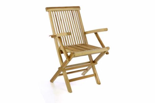 Masivní, praktická skládací židle s područkami - pocit dovolené ve Vaší zahradě, balkoně nebo terase. Masivní teak zpracovaný v nadčasovém designu, přinese pozornost kolemjdoucích na Vaší zahradu nebo balkon. Tato skládací židle je složena během pár okamžiků a díky područkám, zaobleným hranám a úzkým latím je, dokonce bez polštáře, sezení velmi pohodlné. Po použití se rychle sklopí a může být úsporně uskladněna. Bez ošetření dřevo po určité době dostává stříbrnošedou patinu. Chcete-li tomu zabránit a získat teplý dřevěný tón svého teakového nábytku, měli byste jej pravidelně ošetřovat teakovým olejem. Upozornění! Dřevo je živoucí materiál, menší praskání a postupné změny barvy jsou normálním chováním tvrdých dřevin. Použité dřevo pochází z kontrolovaného zpracování dřeva a pěstby. Teakové dřevo je velmi odolné vůči povětrnostním vlivům, a proto je vhodné pro venkovní použití. Neošetřené teakové dřevo získá v průběhu času svou slavnou stříbrno-šedou patinu. Pokud tento efekt nechcete, měli byste ošetřit lehátko teakovým olejem, který je k dispozici také v našem obchodě - D02143, D02144 skládací židle z neupraveného teaku ručně vyrobené několikrát jemně obroušené sklopné opěrku zad nelze polohovat Technické údaje: druh dřeva: Teakové dřevo - z kontrolované pěstby a zpracování celková výška: přibližně 89 cm šířka: cca 57 cm hloubka: přibližně 62 cm plocha sedadla: cca 38 cm x 38 cm výška opěradla: cca 50 cm výška sedáku: cca 46 cm tloušťka područek: cca 5 cm hmotnost: cca 7 kg nosnost: cca 90 kg Obsah balení: 1 x židle z masivního dřeva s područkami
