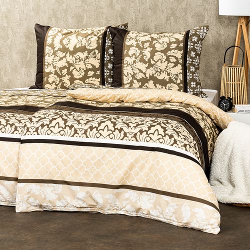 Dopřejte si dokonale harmonickou ložnici s bavlněným povlečením Nature. Barvy jsou laděné do přírodních zemitých tónů hnědé a béžové, které dodají každému interiéru příjemné teplo a zklidní vaši mysl i po náročném dni. Harmonický dojem navíc podtrhují květinové a zámecké ornamenty, které povlečení dodávají originální vzhled. Příjemná 100% bavlna vám zajistí kvalitní a ničím nerušený spánek. Povlak na přikrývku je z obou stran stejný, povlak na polštář má z každé strany trochu jiný vzor. Pro maximální pohodlí má povlečení praktické zapínání na zip.Souprava obsahuje: 1x povlak na polštář 70 x 90 cm 1x povlak na přikrývku 140 x 200 cm