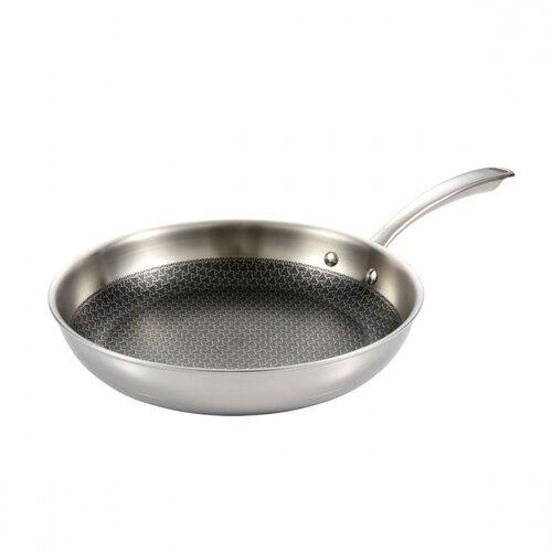 Luxusní pánev z prvotřídní nerezavějící sendvičové oceli s revolučním antiadhezním povlakem opatřeným ocelovým rastrem pro intenzivní rovnoměrné opékání bez připalování. Odolná vůči kovovému kuchyňskému nářadí, vhodná pro všechny typy sporáků včetně indukčních i pro zapékání v pečicí troubě. Snadné čištění. 5 roků záruka.