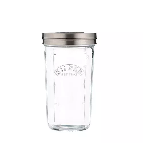 skleněná dóza Kilner se sítkem 0,5 l vybavena šroubovacím nerezovým sítkem a víčkem vhodná pro skladování, prosévání sypkých potravin nebo jako cukřenka vylisovaná odměrka z vnější strany sklenice pro odměřování potravin kvalitní čiré nárazuodolné sklo vhodné pro každodenní užití sklenici lze mýt v myčce na nádobí, nerezové doplňky umývejte ručně kvalitní značkový výrobek Kilner dodáváno v barevné kartonové krabičce